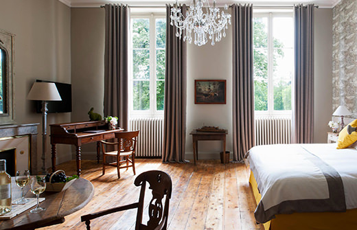The Bordeaux region is well known for its fine wines. Perhaps less known is the fact that some of the wineries provide fine lodgings as well. One of the most charming places to stay just outside Saint-Émilion is Les Belles Perdrix at the wine estate Château Troplong Mondot where Christine Valette-Pariente, formerly a journalist, operates an authentic country hotel with a touch of understatement in a building whose historic exterior dates back to 1745.
