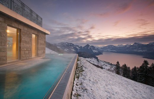 Watching the sunset from the infinity pool of Villa Honegg is an unforgettable experience. From the pool, you overlook Lake Lucerne and mountains all the way to the horizon. A great place to catch your breath and find back to yourself.